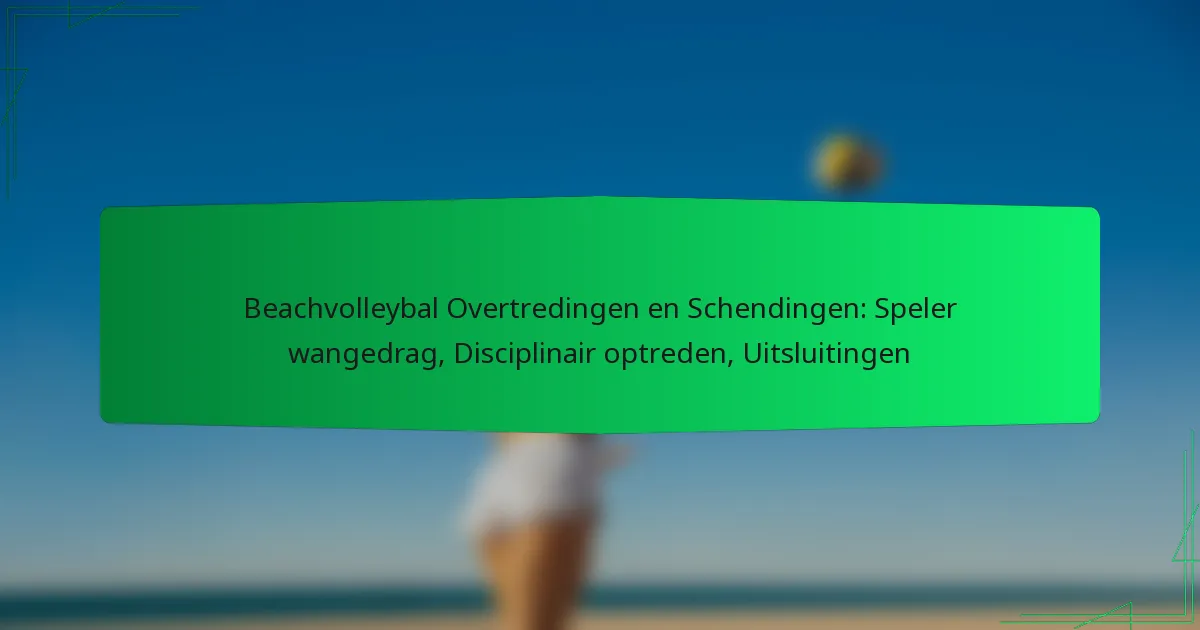 Beachvolleybal wordt beheerst door specifieke regels met betrekking tot fouten en overtredingen die de uitkomst van wedstrijden aanzienlijk kunnen beïnvloeden. Wangedrag van spelers kan leiden tot disciplinaire maatregelen, waaronder waarschuwingen of zelfs uitsluitingen, gericht op het behoud van fair play en sportiviteit. Ernstige overtredingen, zoals disrespect tegenover scheidsrechters of tegenstanders, kunnen ertoe leiden dat een speler uit het spel wordt gezet om de integriteit van de sport te waarborgen.